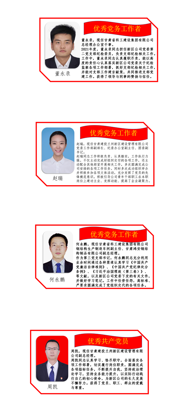 新區(qū)公司2021年度優(yōu)秀共產(chǎn)黨員、優(yōu)秀黨務(wù)工作者風(fēng)采展