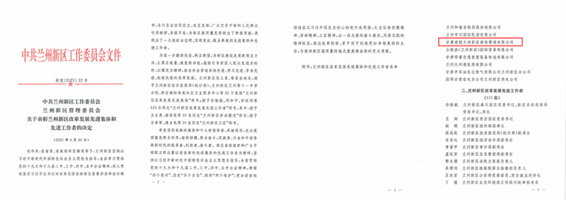 甘肅建投新區(qū)公司榮獲“蘭州新區(qū)改革發(fā)展先進(jìn)集體”榮譽(yù)稱號
