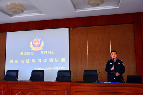 甘肅建投新區(qū)公司攜手蘭州新區(qū)中川東區(qū)派出所開展防范電信網(wǎng)絡(luò)詐騙專題講座