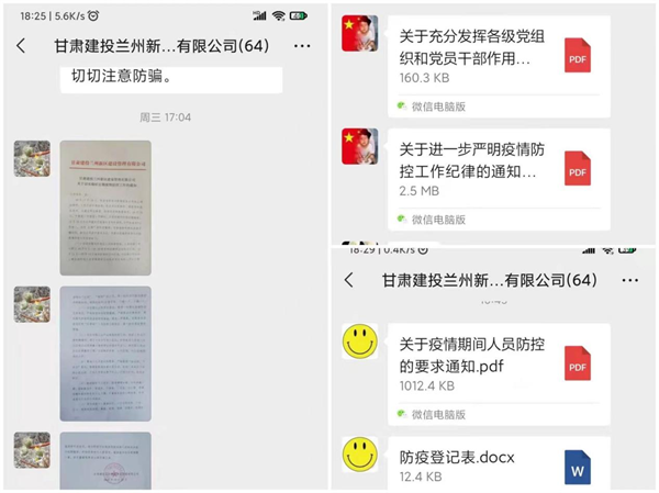 新一輪疫情發(fā)生以來,甘肅建投新區(qū)公司黨委嚴(yán)格按照地方疫情防控部署要求,積極響應(yīng)上級黨委號召,科學(xué)判斷形勢、精準(zhǔn)把握疫情,統(tǒng)一領(lǐng)導(dǎo)、統(tǒng)一指揮、統(tǒng)一行動,認(rèn)真做好各項(xiàng)疫情防控工作。要求各干部職工認(rèn)真履行職責(zé)和使命,根據(jù)各自職責(zé)分工,自覺提高站位、強(qiáng)化大局意識、主動擔(dān)當(dāng)作為,全面形成聯(lián)防聯(lián)控、群防群治的疫情防控工作合力。
