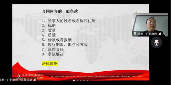 本次講座邀請上海市匯業(yè)(蘭州)律師事務(wù)所陳勝律師為大家開展線上普法專題講座,陳勝律師從合同簽訂過程中應(yīng)注意的法律風(fēng)險、《中華人民共和國民法典》及其他法律法規(guī)關(guān)于建設(shè)工程合同的規(guī)定解讀、合同簽署過程中應(yīng)注意的事項和條款、案例講解、電信網(wǎng)絡(luò)詐騙等方面,為大家講授了實用有益的普法知識。當(dāng)下網(wǎng)絡(luò)詐騙層出不窮,社會危害嚴(yán)重,他結(jié)合當(dāng)下社會熱點事件和社會現(xiàn)象,講解了網(wǎng)絡(luò)貸款、刷單返利、冒充電商物流客服等常見的網(wǎng)絡(luò)電信詐騙手段,他通過案例為我們講述如何應(yīng)對網(wǎng)絡(luò)詐騙,使廣大職工增強(qiáng)了自身防詐騙的水平和能力,提高了自我保護(hù)能力。