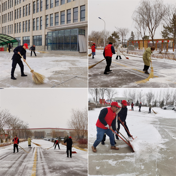 大家手拿鐵鍬、掃帚等掃雪工具,針對(duì)辦公樓周圍主要通行道路進(jìn)行除雪、鏟冰作業(yè),個(gè)個(gè)奮勇當(dāng)先、熱情滿懷,呈現(xiàn)出一副熱火朝天的場(chǎng)面。