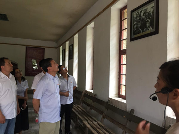 全體黨員在楊家?guī)X革命舊址仔細(xì)聆聽講解員介紹